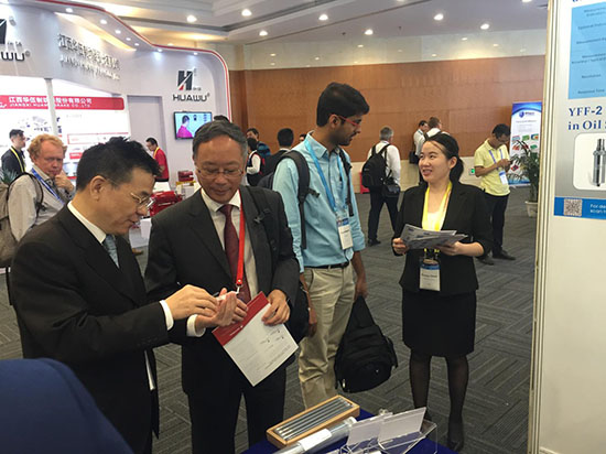 WTC2017第六屆國際摩擦學大會主席、清華大學機械學院院長、中科院院士雒建斌先生蒞臨亞泰光電展臺指導,對亞泰光電新研發的便攜式顆粒計數器和薊管式鐵譜儀給予高度評價。