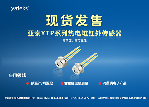 深圳市亞泰光電技術有限公司面對疫情新需求,緊急調整產品研制計劃,組織精兵強將研究封裝工藝,攻克了一些技術難題,引進了自動化封裝關鍵設備,項目組加班幾點設計制作夾具,編制工藝文件, 封裝線于5月15日正式投入生產。?現有YTP-518、YTP-538 可供客戶選擇。采用MEMS熱電堆芯片、TO-46金屬封裝、NTC阻值為100±1%,濾光片平均透過率可達85%(5.5-14μm),密封性10-9pa.m3/s,確保紅外測溫儀的高精度(精度可達正負0.1℃)。