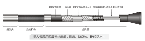 (1)插入管采用四層鎢絲編織,耐磨、防腐蝕、IP67防護(hù)等級(jí);