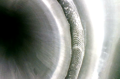 在現(xiàn)場工藝員協(xié)助下拆卸了不同部位的潔凈管進(jìn)行驗證,前面先近距離細(xì)看焊縫,再拉遠(yuǎn)看,發(fā)現(xiàn)焊縫上反光亮度強(qiáng)的位置,都存在焊接不良的情況(焊接電流太小,外部焊好了,內(nèi)部未焊透)。甲方相關(guān)設(shè)備管理人員對亞泰內(nèi)窺鏡產(chǎn)品的清晰度很認(rèn)可,兩款設(shè)備對比,覺得高清系列SIE分離式的工業(yè)視頻內(nèi)窺鏡通過大屏配合手柄調(diào)動探頭位置,篩查焊縫不良的效率更高一些,管線客戶需要長一點的,雙方己達(dá)成初步合作意向,后續(xù)合作細(xì)節(jié)還有待進(jìn)一步深入溝通。