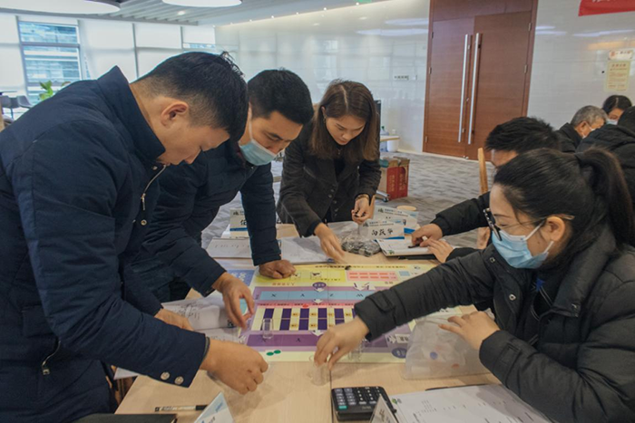 參訓學員分成6個小組,模擬企業實際運作背景,每組代表一家虛擬企業,各小組成員按角色分工,分別擔任企業中的總裁、市場營銷總監、生產總監、財務總監、研發總監等職位,一家家企業相繼成立。