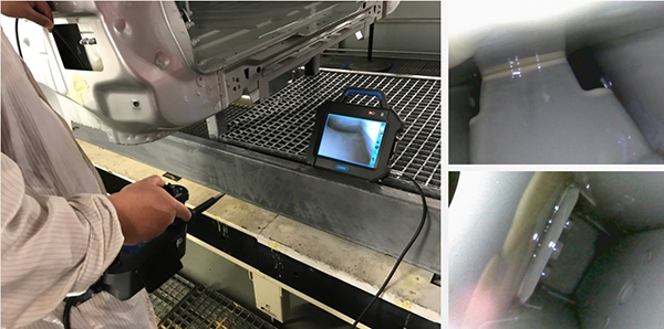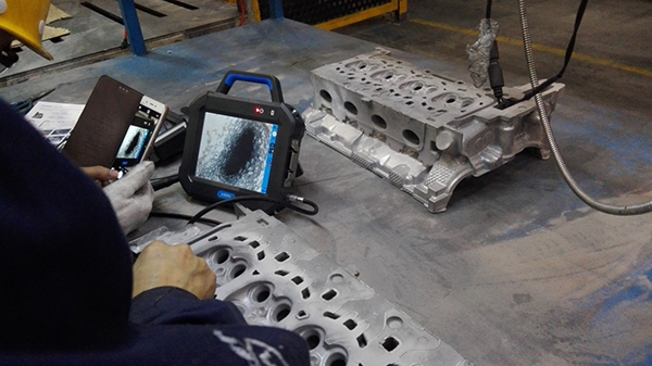 使用工業內窺鏡作為一種可視的直觀檢查設備,效率很高。目前常用的檢查位置很多,包括發動機的氣門位置附近的積碳、機加工的各種相交孔產生的毛刺、鑄造產生的鑄件存在的沙眼毛刺等缺陷、查看焊接位置的質量及車身內部填充的質量等,并且,這些都成為了汽車制造中最重要的檢測位置。