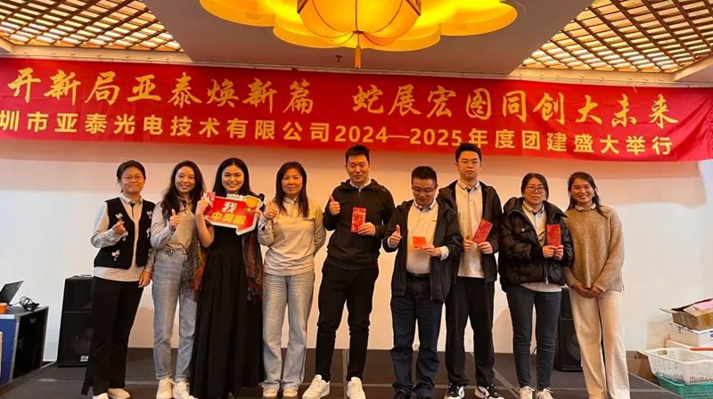 12月13日,深圳亞泰光電迎來了公司2024—2025年度的團(tuán)建盛典。在這個(gè)充滿希望與挑戰(zhàn)的新起點(diǎn)上,全體員工齊聚一堂,以“龍開新局,亞泰煥新篇;蛇展宏圖,同創(chuàng)大未來”為主題,共同開啟了一段難忘的旅程。會場內(nèi)洋溢著對過去一年成就的自豪和對未來發(fā)展的期待,每一個(gè)微笑背后都蘊(yùn)含著對公司未來的堅(jiān)定信心。