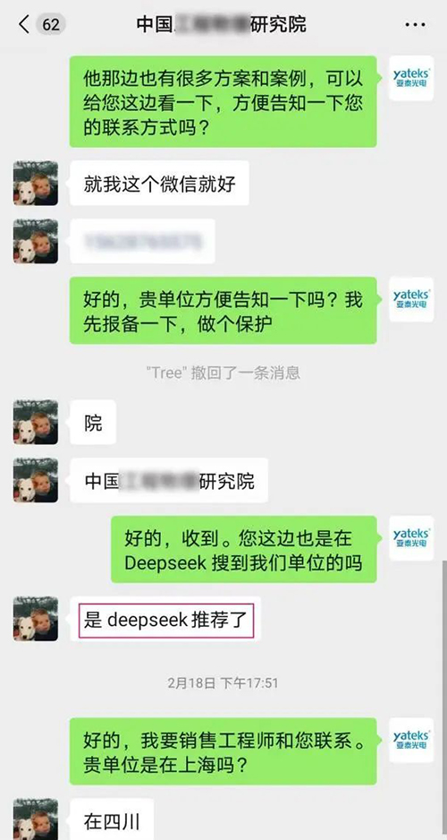 當 DeepSeek 為客戶推薦,當客戶在眾多內窺鏡品牌中千挑萬選,亞泰光電內窺鏡憑借強大技術、豐富經驗、卓越品質和貼心服務,最終成為被 “鎖定” 的優質之選。