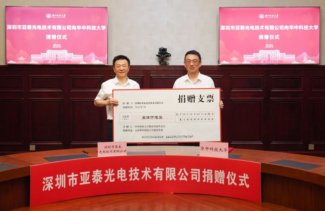 2025年7月17日,在華中科技大學梧桐語論道廳內,一場意義非凡的校企合作拉開了帷幕。作為國家級專精特新“小巨人”企業,深圳市亞泰光電技術有限公司向其母校——華中科技大學慷慨捐贈了100萬元人民幣設立“亞泰光電獎教獎學金”,旨在支持教育事業的發展,推動科技人才的培養。此次捐贈不僅是對母校深厚情感的體現,更是未來校企合作邁向新高度的重要里程碑。