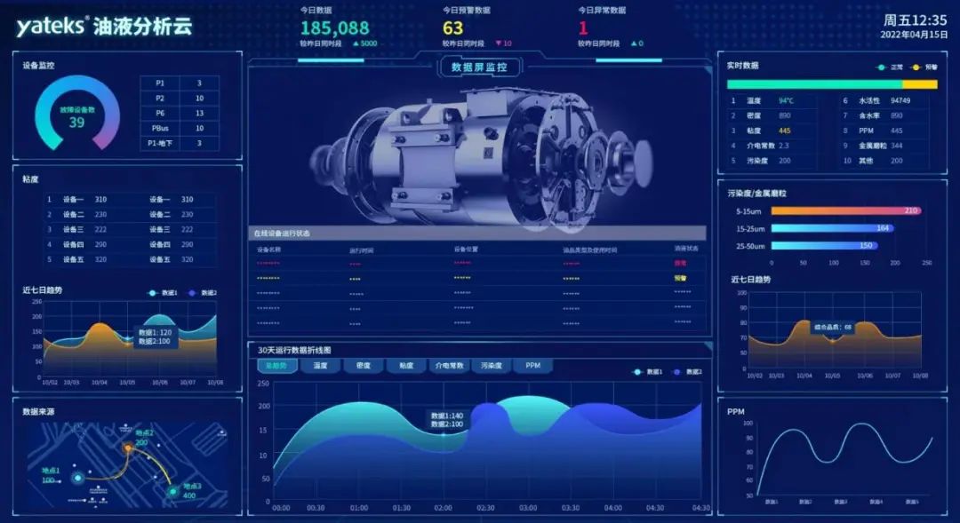 亞泰光電油液監(jiān)測(cè)系統(tǒng)通過搭載高精度傳感器和物聯(lián)網(wǎng)技術(shù),實(shí)時(shí)采集油液的溫度、粘度、含水量、金屬顆粒濃度等關(guān)鍵指標(biāo),結(jié)合AI算法進(jìn)行動(dòng)態(tài)分析,精準(zhǔn)捕捉設(shè)備異常信號(hào)。無論是發(fā)動(dòng)機(jī)的早期磨損、液壓閥的微小泄漏,還是油液氧化導(dǎo)致的性能下降,系統(tǒng)都能在故障發(fā)生前發(fā)出預(yù)警,讓運(yùn)維從“被動(dòng)搶修”轉(zhuǎn)向“主動(dòng)防護(hù)”。