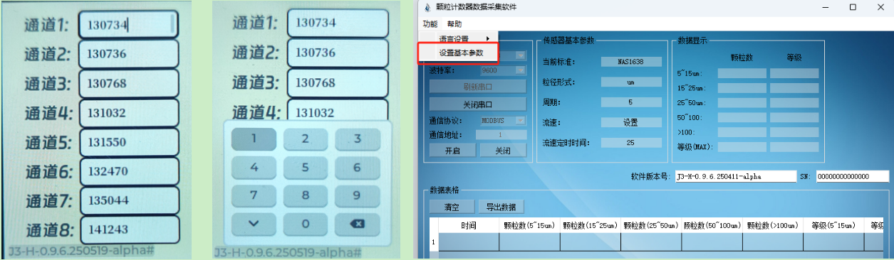 傳感器主界面主要由“標準”、“單位”、“周期”、“流速”、“地址”、“協(xié)議”、“語言”、“模式”、“波特率”九個選項組成,檢測操作時將根據(jù)以上四項的設置進行;并且傳感器提供上位機軟件。