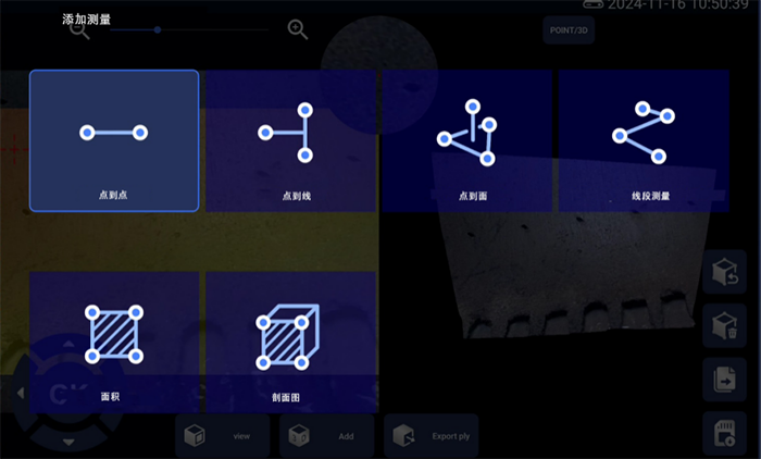 2、精準(zhǔn)三維測(cè)量功能——生成3D點(diǎn)云圖、深度圖、剖面圖等重現(xiàn)被測(cè)物體外貌輪廓,其中三維立體點(diǎn)云圖可縮放、旋轉(zhuǎn)等,實(shí)時(shí)驗(yàn)證選點(diǎn)準(zhǔn)確性,避免選點(diǎn)錯(cuò)誤導(dǎo)致的測(cè)量結(jié)果失準(zhǔn)。