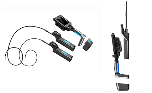 3、TIE三維內窺鏡采用模塊化設計,可快速拆裝更換——觸摸屏和按鍵雙智能化操作設計以及符合人體工程學設計的手柄,便于握持和單手操作;大容量可拆卸充電的電池包,提供強力續航; 可更換的手柄,一主機可搭配多手柄。