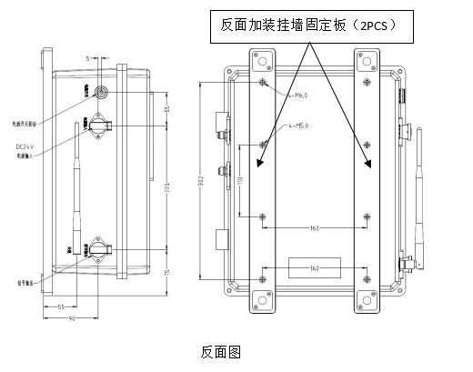 監測箱內部結構組成:磨粒傳感器+清潔度傳感器+含水率傳感器+粘度傳感器+微量水傳感器+介電常數等,用戶可根據不同需求進行功能選配。監測箱外觀結構組成:監測箱主體(1PCS)+掛墻固定板(2PCS)+天線。