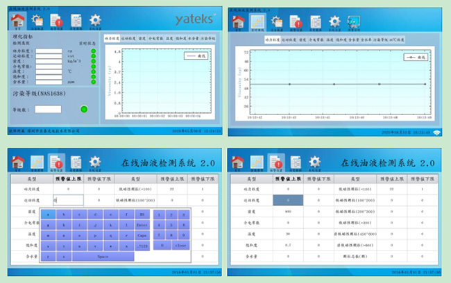 本系統集成了多種技術先進的在線油液傳感器,可監測潤滑油粘度、密度、溫度、介電常數、水分、金屬磨粒、污染度傳感器等等多種潤滑油的理化指標、污染度指標、金屬磨粒指標。能判斷設備早期故障和及時提醒用戶,與傳統的時間表相比,可以采取更低成本的保養措施,實現為設備長久穩定運行保駕護航。
